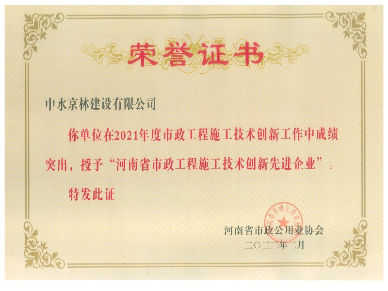近日,從河南省市政公用業(yè)協(xié)會傳來喜訊,我司被評定為“AAA級信用企業(yè)”,同時榮獲集體榮譽(yù)四項:河南省市政公用工程優(yōu)秀施工企業(yè)、河南省市政公用工程施工質(zhì)量管理先進(jìn)企業(yè)、河南省市政公用工程施工安全管理先進(jìn)企業(yè)、河南省市政公用工程施工技術(shù)創(chuàng)新先進(jìn)企業(yè),施工質(zhì)量管理先進(jìn)個人1名,施工企業(yè)優(yōu)秀總工程師1名。